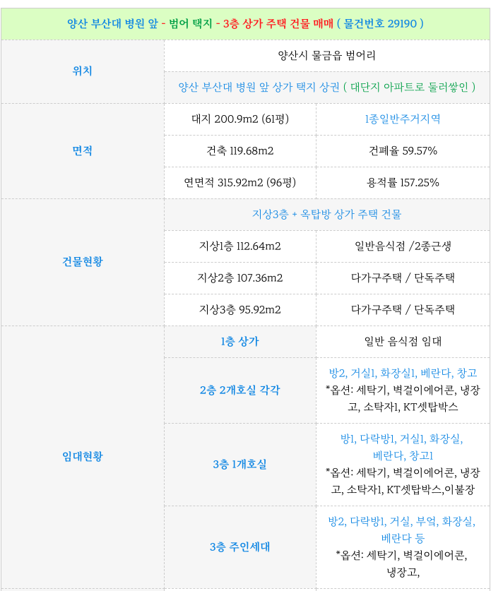 - 2025.09.17 (실거주가능) 양산 부산대 병원 범어 택지 상가 주택 매매 매물