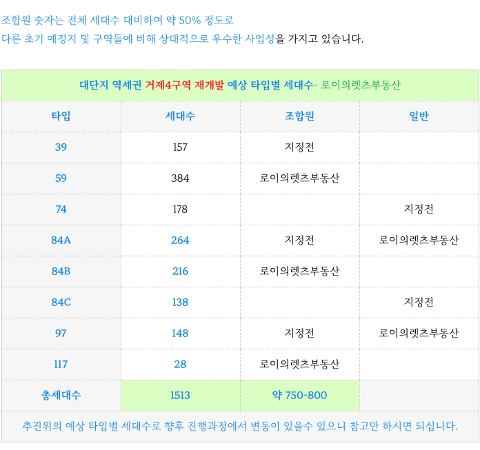 재건축임에도 일반 분양 숫자가 470여세대로 상대적으로 양호한 사업성을 가지고 있고