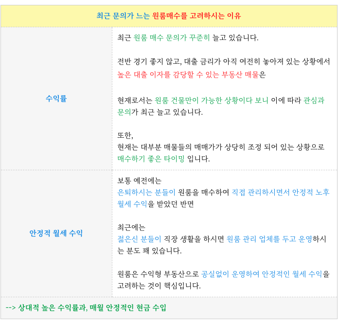 원룸매수를 고려하시는 분들의 이유는 무엇일까요 ?