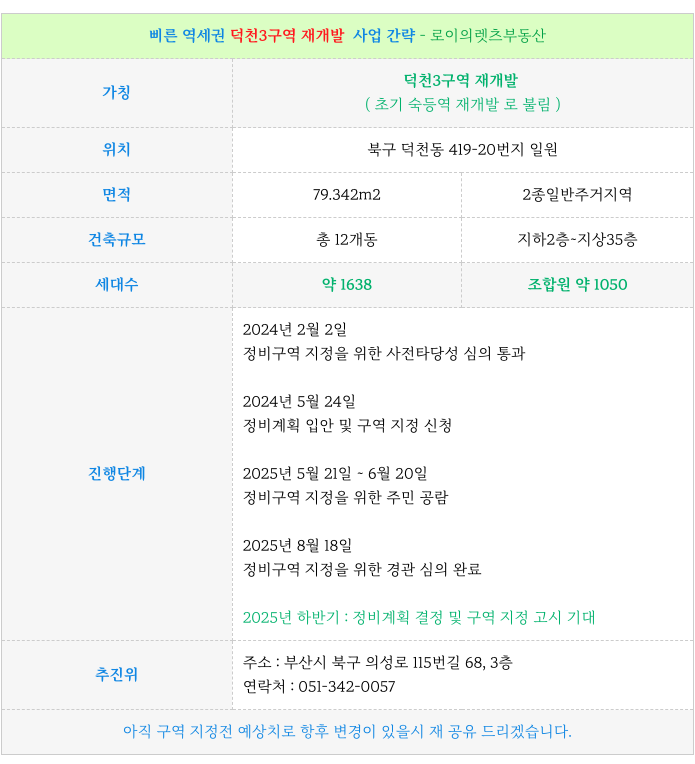 - 2025.09.24 덕천3구역 (숙등역) 재개발 : 구역 지정 일정 & 소액 매물