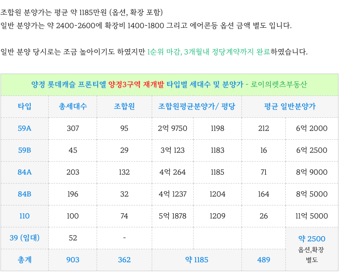 조합원 분양가는 전체 평균 약 1850만원 이지만 사실상 약 1900~2000정도로 보시면 되고