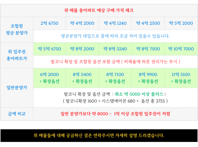조합원 매물의 총아파트 가격이 일반 분양가 보다 휠씬 저렴하여 그 가격적 장점도 높아