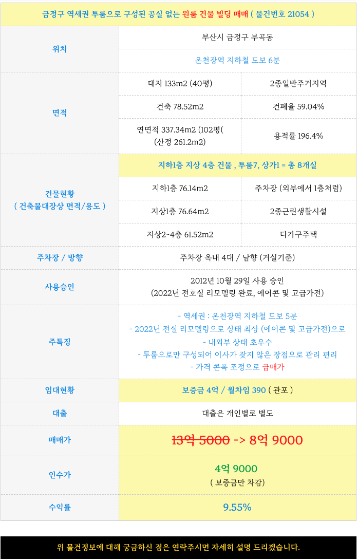 - 2025.09.03 부산 동래구, 금정구 알찬 공실없는 급매 원룸 통 건물 매매