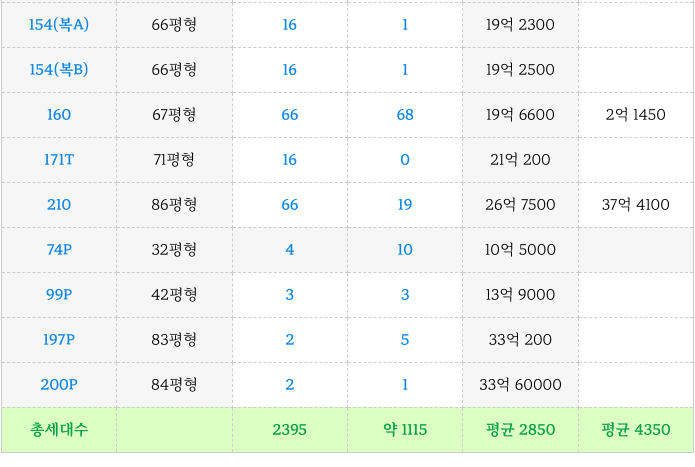 4. 괴정5구역 재개발 : 타입별 세대수 :
