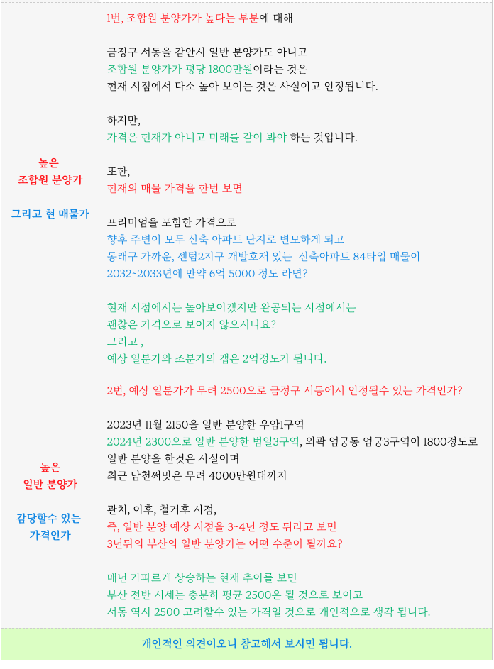 1) 가장 큰 장점 : 놀라운 가격, 조합원 분양가