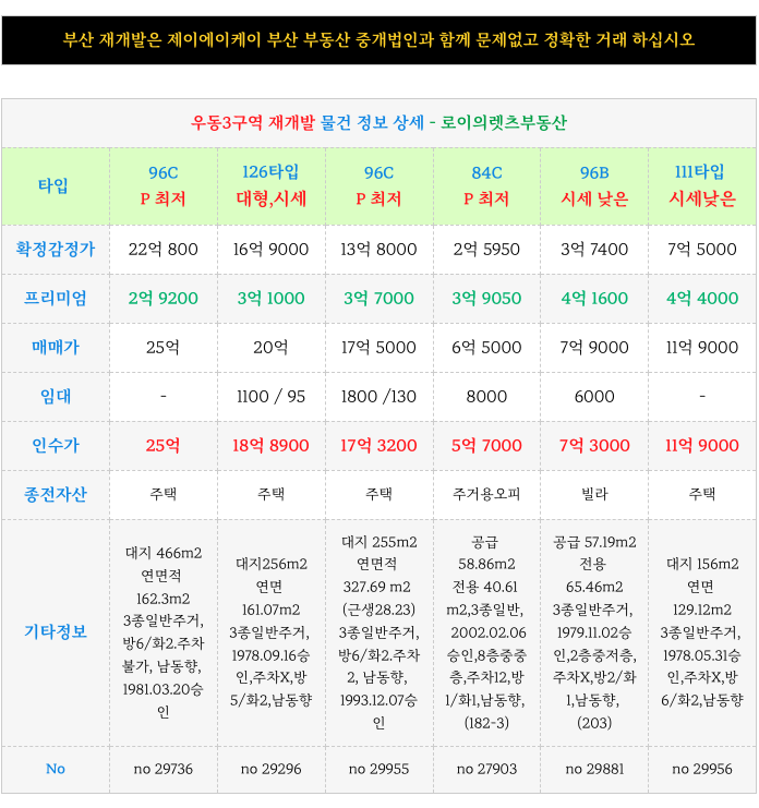 1. 우동3구역 재개발 : 확정감정가 + 타입 확정 매물 소개 :