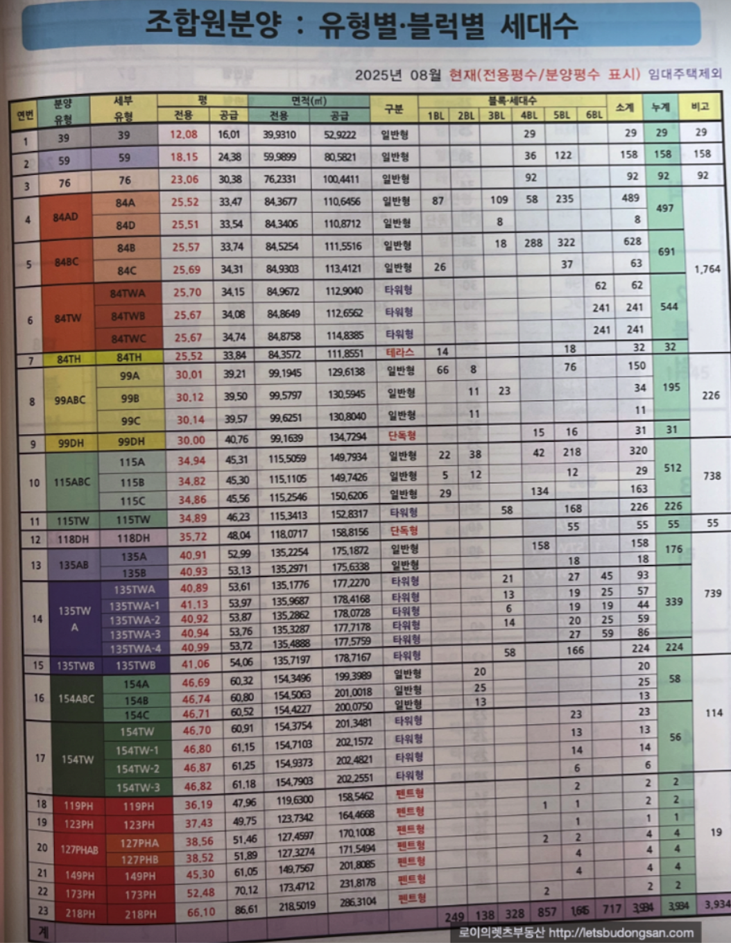 3. 우동3구역 재개발 : 타입별 세대수 :