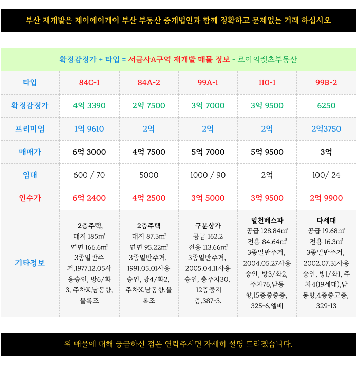 부산 전역 재개발에 대해 궁금하신 사항은 방문 또는 연락주시면 자세히 설명 드리겠습니다.