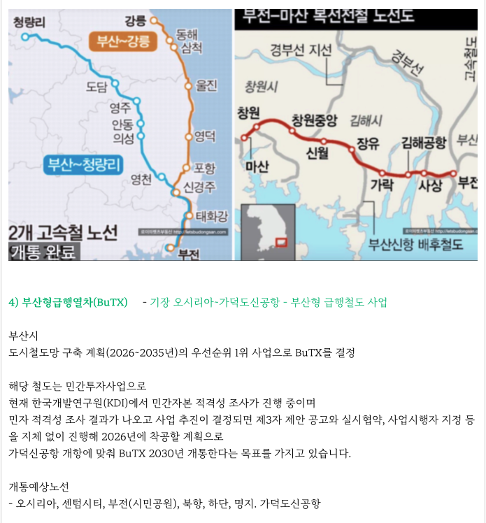 기장 오시리아 ~ 가덕도 신공항 연결하는 부산시 철도 우선 1순위로 추진중인 부산형급행열차 BuTX 역시