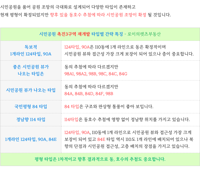 4. 촉진3구역 재개발 : 타입별 세대수 및 특징, 분양가 :