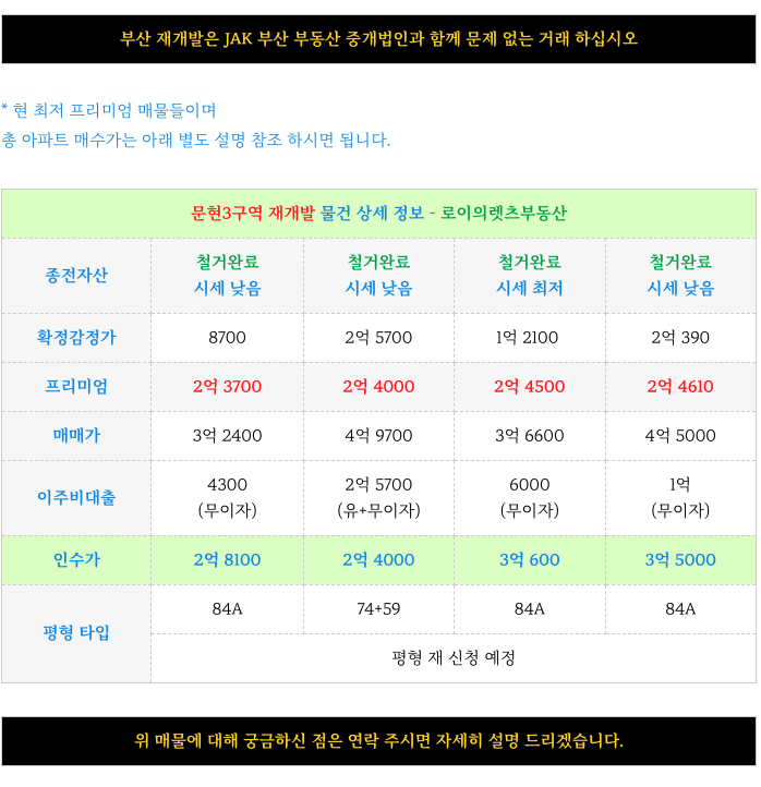 부산 전역 재개발에 대해 궁금하신 사항은 방문 또는 연락주시면 자세히 설명 드리겠습니다.