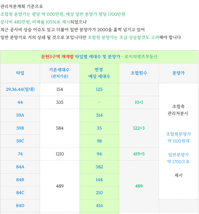 3. 문현3구역 재개발 : 각 타입별 세대수 + 분양가 체크 :