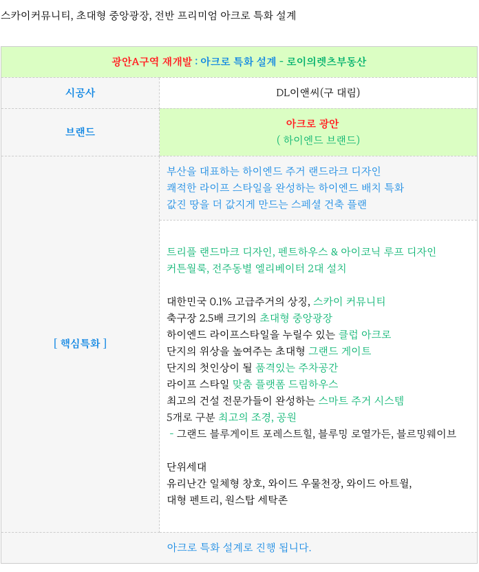 6. 광안A구역 재개발 : 사업 주요 특징 간략 :
