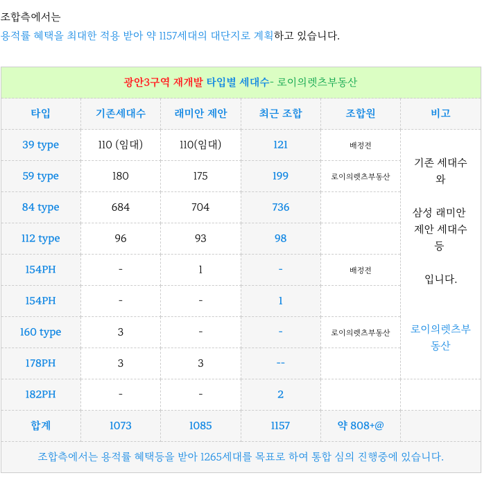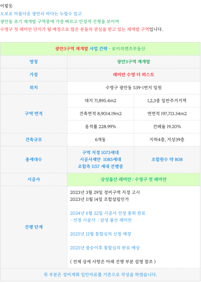 2. 현 매물 업데이트 : 광안3구역 재개발 :