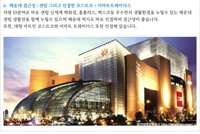또한, 해운대 센텀 생활권 (차량 10분) 으로