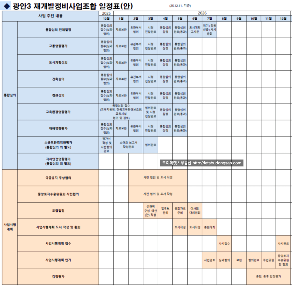 1. 2026년 진행 일정 : 광안3구역 재개발 :