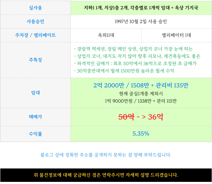 - 파격적인 급매가 : 최초 50억에서 36억으로 조정된 초 급매가