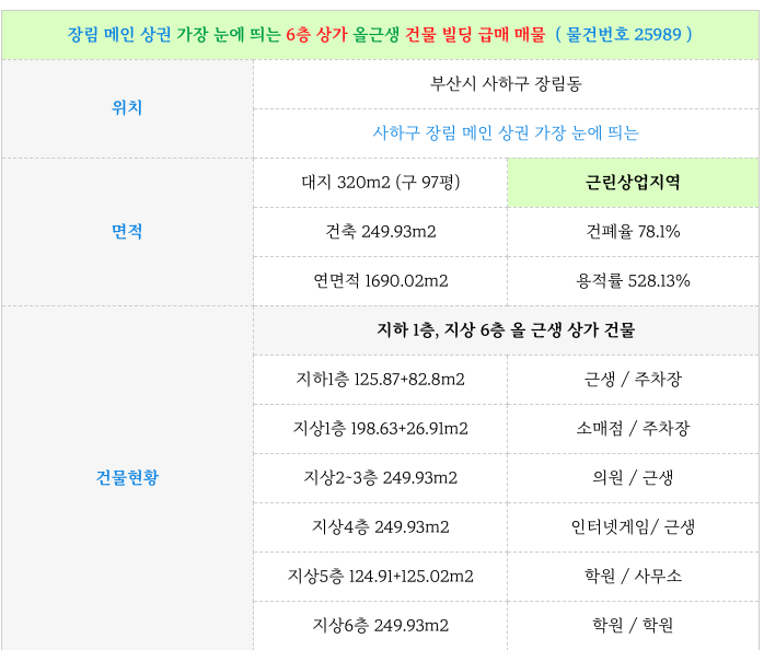 장림 메인 상권 가장 눈에 띄는 6층 상가 올근생 건물 빌딩 급매 매물 물건 정리 해드립니다.