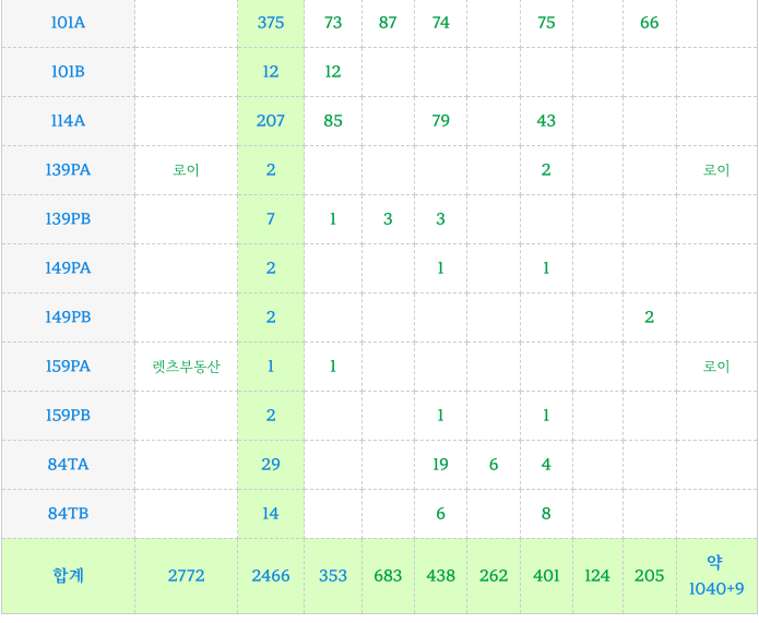 84타입 이상을 늘리는 설계 변경을 진행하여 타입별 세대수 변경이 있었고