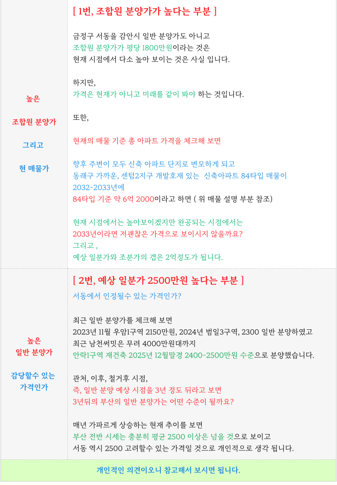 3. 매수 가격, 시점 적정성 체크 : 서금사5구역 재개발 :