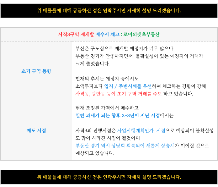 부산 전역 재개발에 대해 궁금하신 사항은 방문 또는 연락주시면 자세히 설명 드리겠습니다.