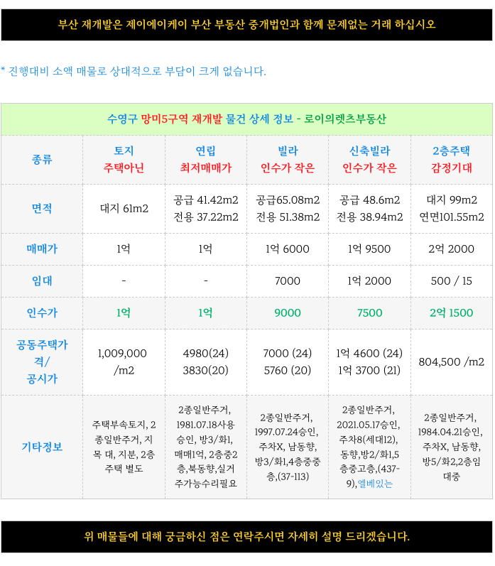 2. 소액 /추/천/ 매물 : 망미5구역 재개발 :