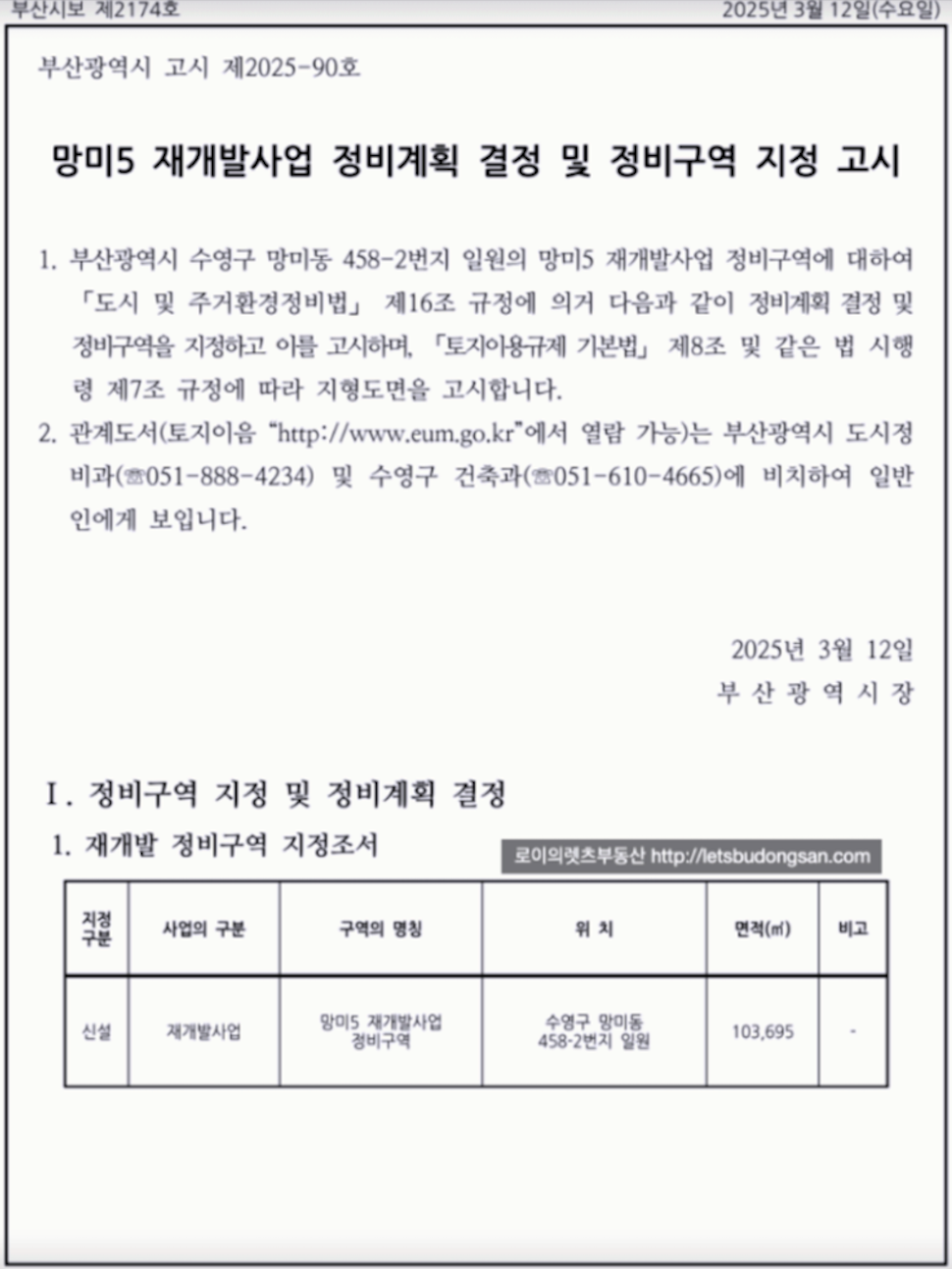 - 2025년 3월 12일 : 정비계획 결정 및 정비구역 지정 고시