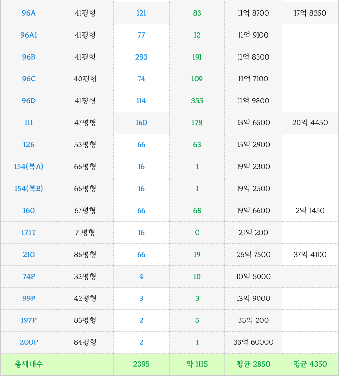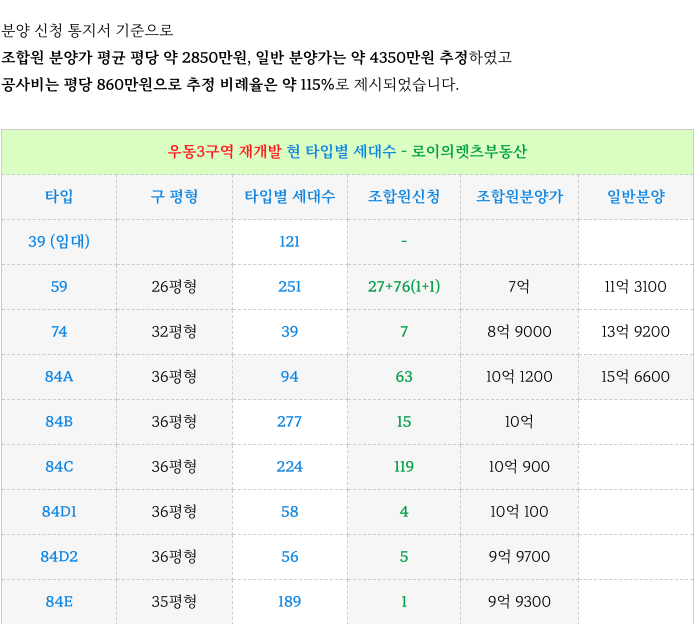 4. 타입별 세대수 / 분양가 : 해운대 우동3구역 재개발 :