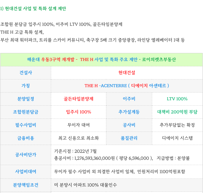 5. 시공사 현대건설 주요 제안 : 해운대 우동3구역 재개발 :
