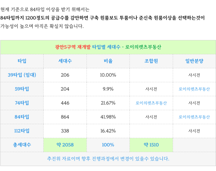 3. 예상 타입별 세대수 : 광안5구역 재개발 :