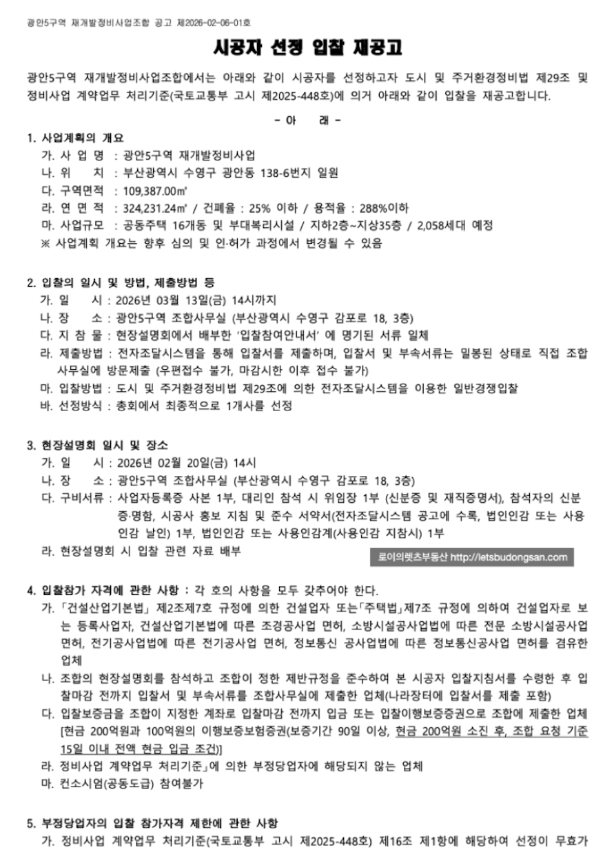 - 2026.02.19 광안5구역 재개발 : 시공사 선정 일정 + 현 매물 정보
