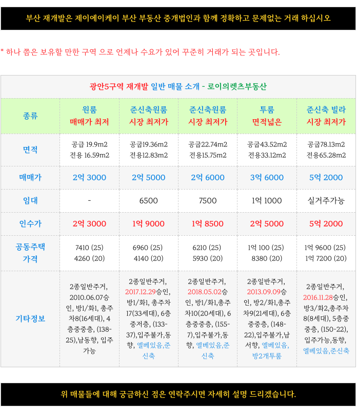 1. 매물 정보 업데이트 (02.14기준) : 광안5구역 재개발 :