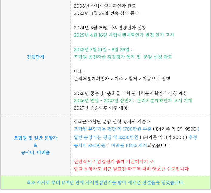 2025년 4월 사업시행계획변경인가 고시, 7~8월 조합원 감정평가 통지 및 분양신청까지 완료하여