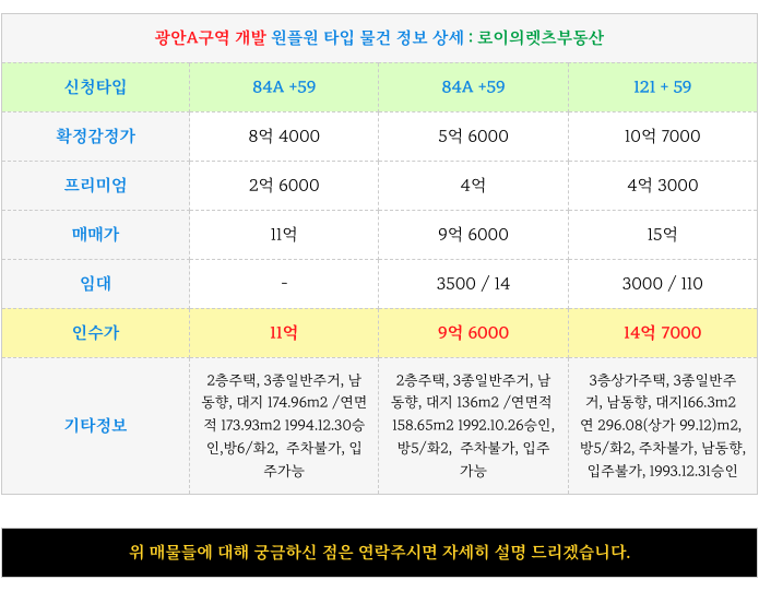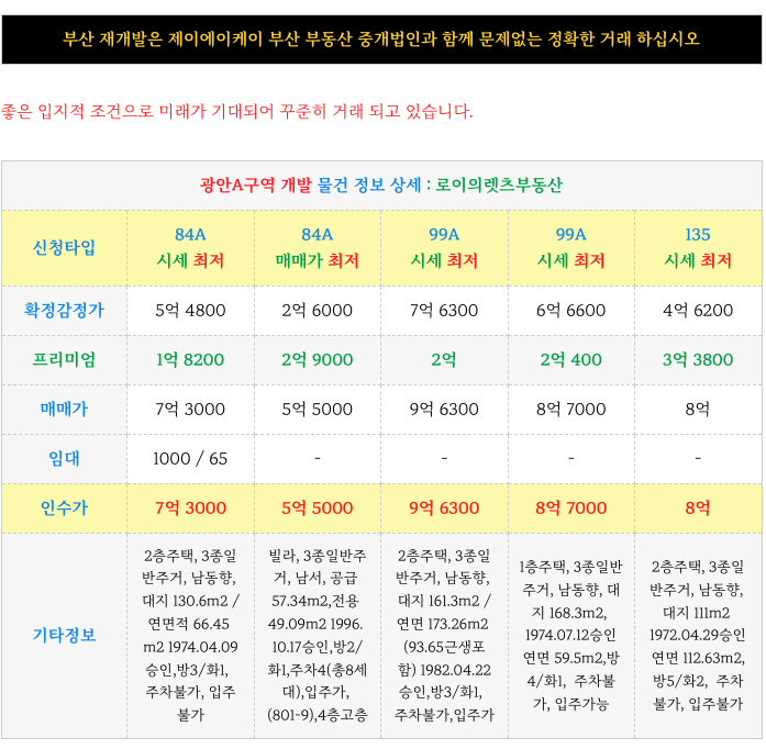 1. 매물 정보 업데이트 : 광안A구역 재개발 :