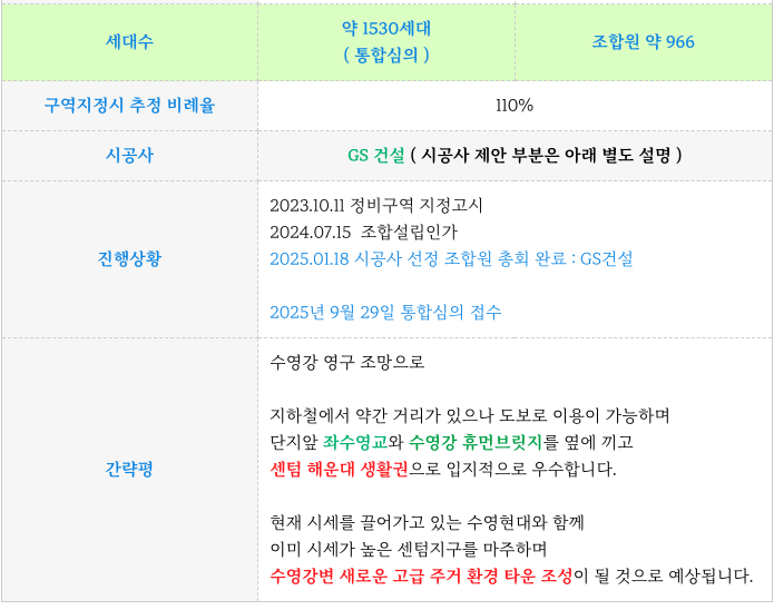 수영1구역 재개발 : 현 매물 + 통합심의 신청 소식, 예상 일정