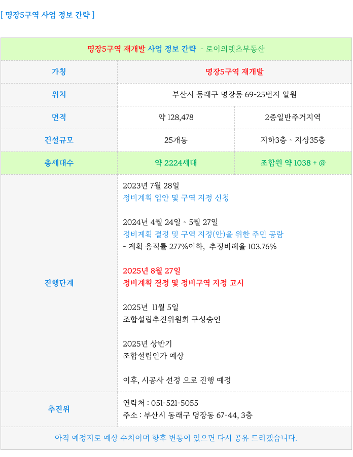명장5구역 / 안락1구역 재개발 : 최근 진행 소식 + 소액 매물