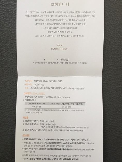대연SK뷰힐스의 사전점검 일정 및 유의 사항을 말씀드리겠습니다.