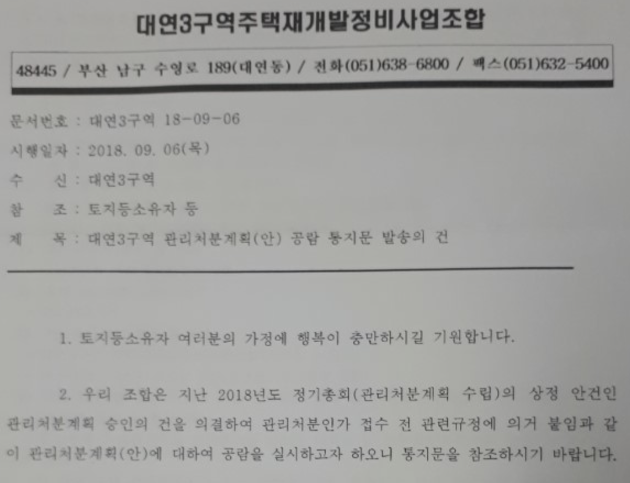 늦어도 내년초까지는 관리처분인가 고시가 결과가 나올 것이며