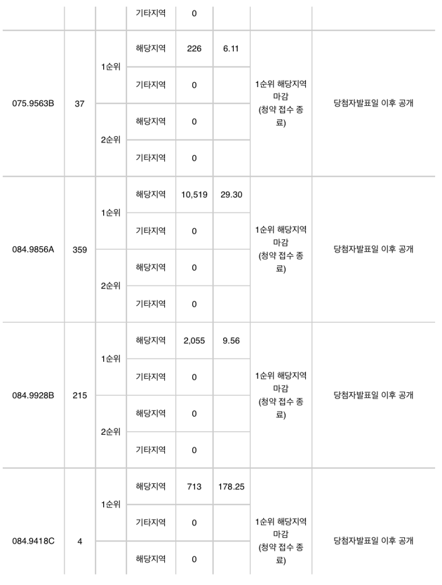 84C타입이 4세대 모딥에 713명이 지원하여 178.25대 1로 가장 높았고