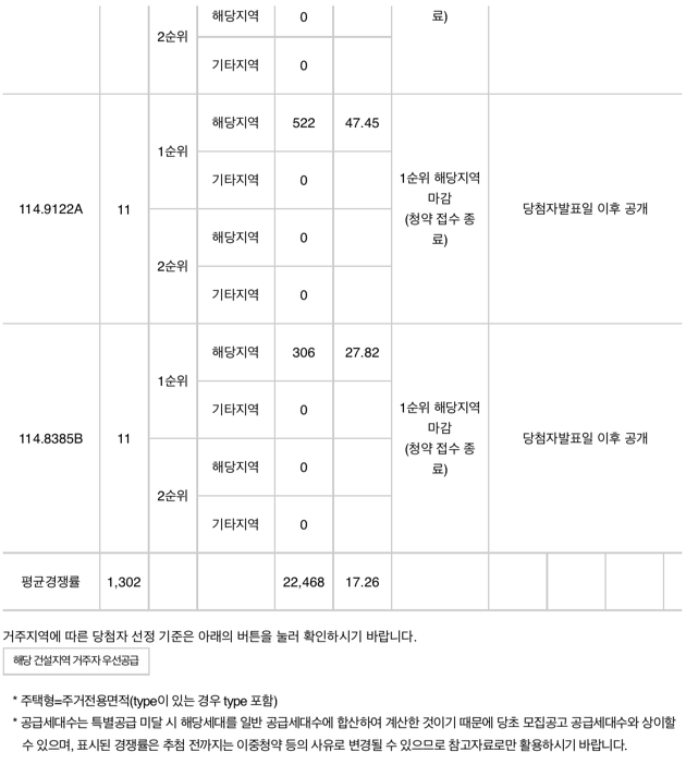 1순위 공급 1302세대 중에 총 22,468명이 접수하여