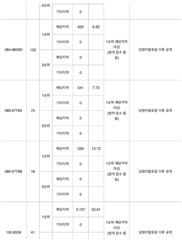 100타입이 41세대에 2,157명이 지원하여 52.61대 1로 다음으로 높았습니다.