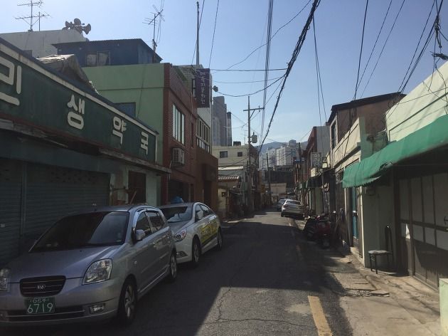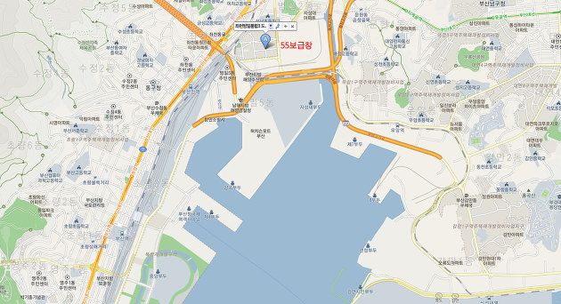 촤천범일통합3지구 앞의 자성대 부두 (허치슨터미널)가