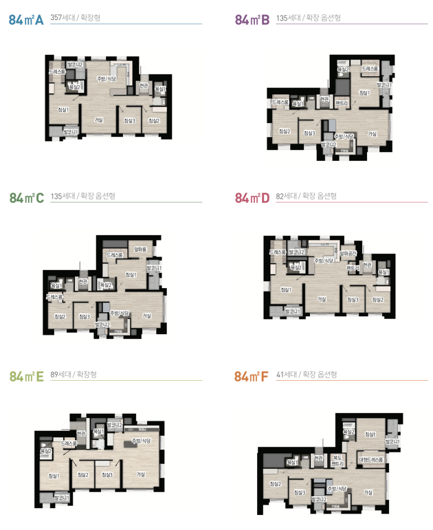 - 84E 평균 1214만 + 발코니 확장 1519만 = 1257만
