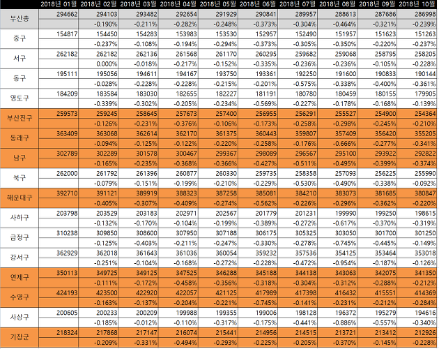 미분양은 작년 10월기준으로 보면 동래구, 수영구 정도만 작년대비 2배 정도 늘어나