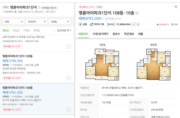 현 시세는 84타입 중층이상기준으로 평당 1700~1850까지 거래가 되고 있습니ㅏㄷ.