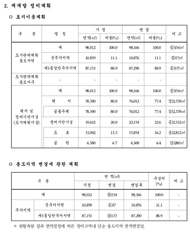 - 구역 면적이 일부 증가하였습니다. : 98,166