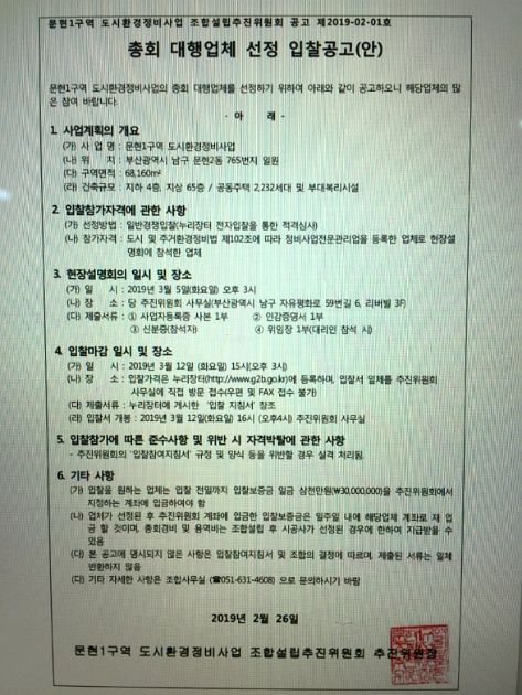 - 2019년 2월 26일 : 총회대행업세 선정을 위한 입찰공고