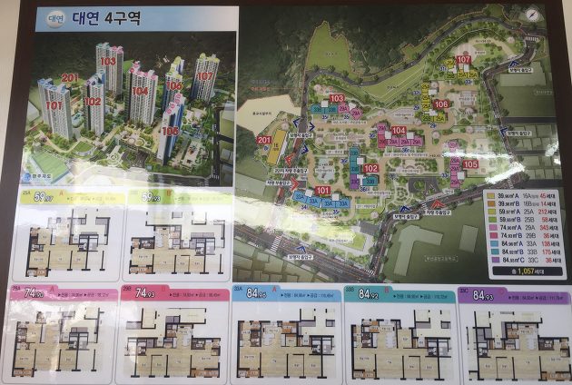 - 84A : 주출입구 앞에서 정남향으로 위치하고 판상형으로 가장 선호 타입
