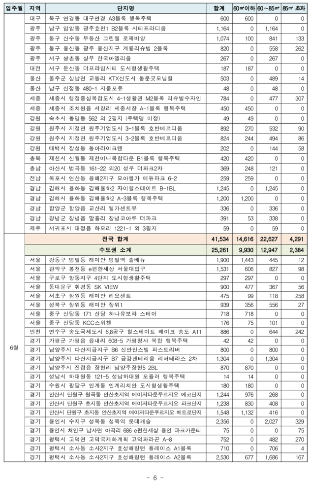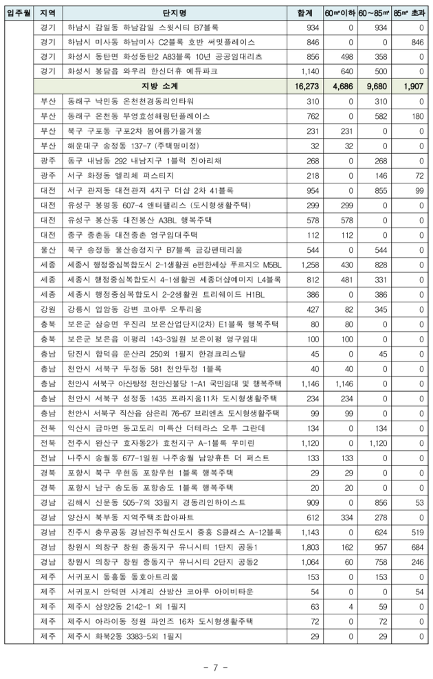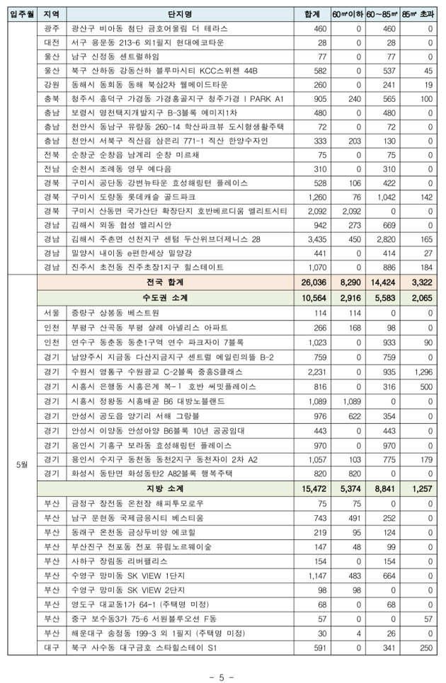 * 85m²이하 중소형주택이 전체의 91.0%로 중소형주택의 입주물량이 많았습니다.