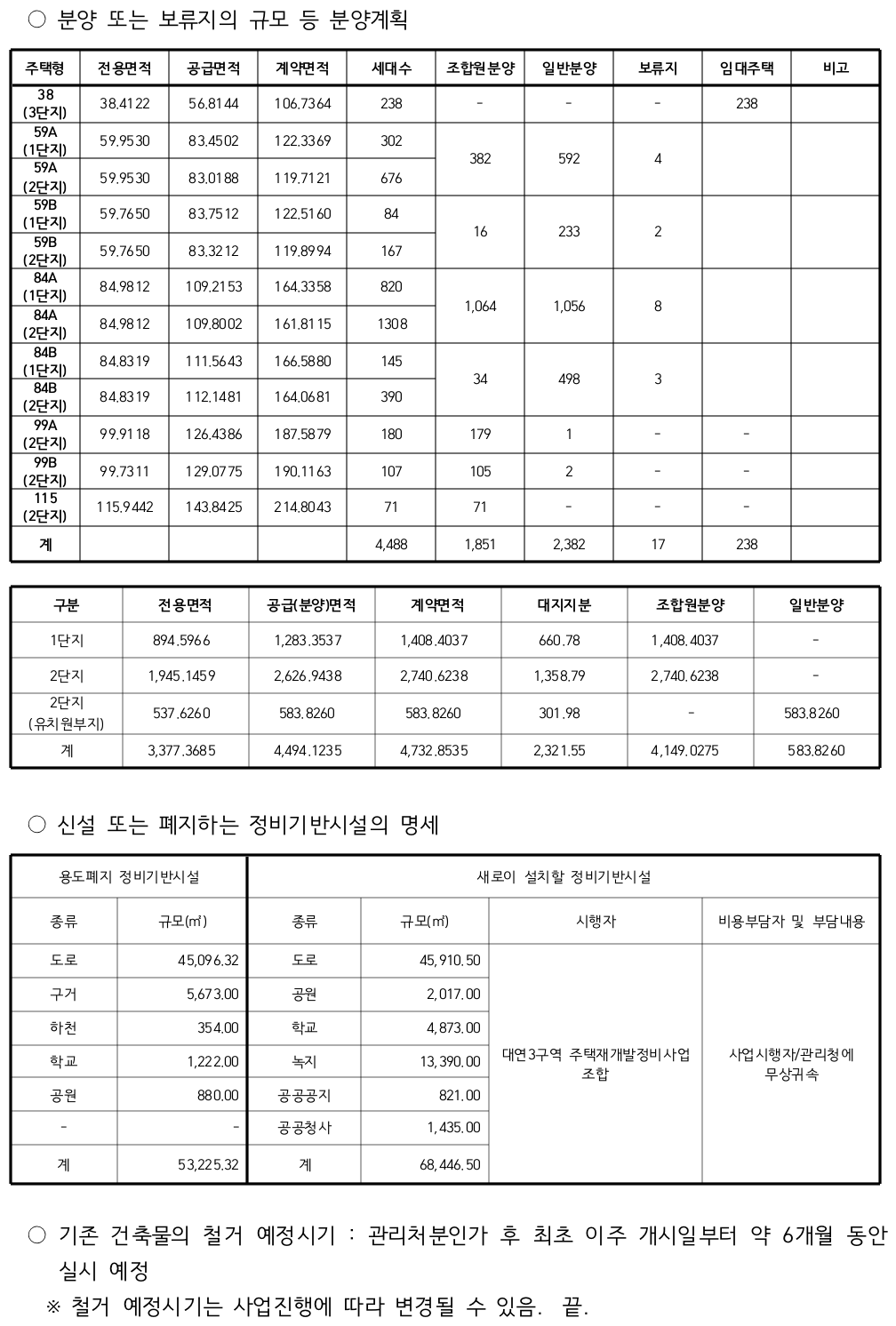 대연3구역 관리처분계획인가 기준 분양 세대수 |